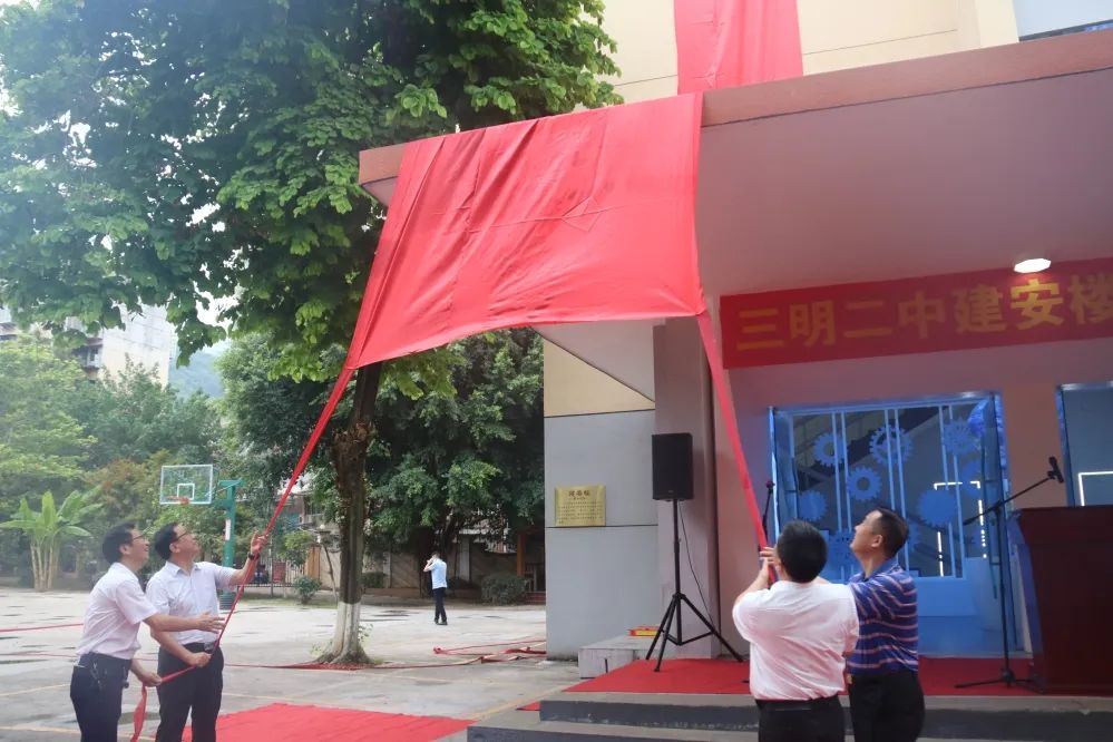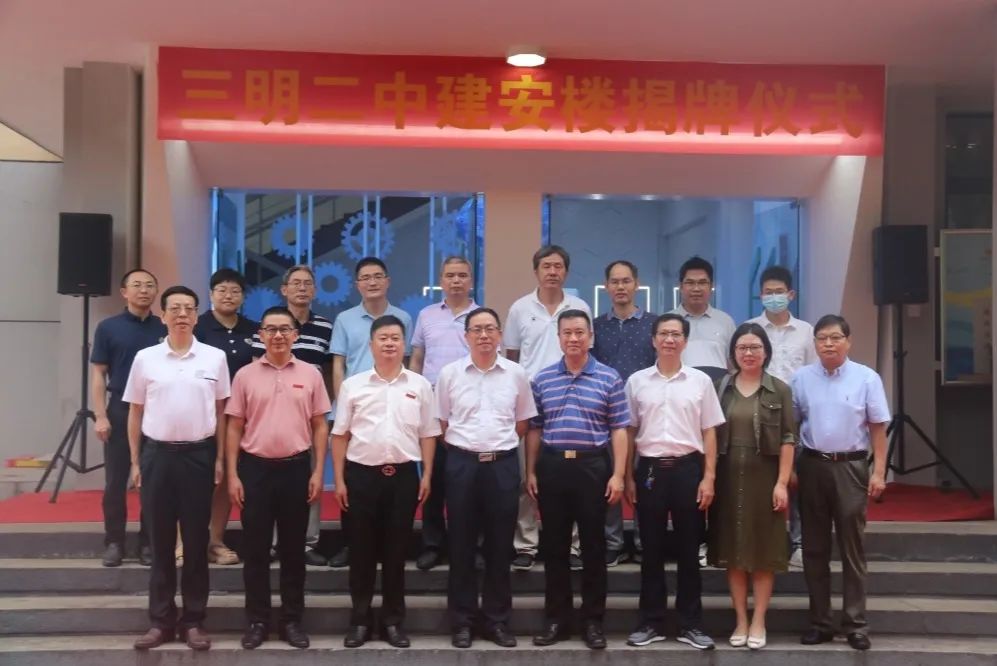 2022年 9月1日上午,三明市第二中學(xué)建安樓揭牌儀式隆重舉行。三明市委教育工委書記、市教育局黨組書記劉若嘉,市政協(xié)教科衛(wèi)體委員會(huì)主任于修芹,市教育局黨組成員、校黨總支書記、校長(zhǎng)伊永河,副校長(zhǎng)陳少清、謝華文、吳文勝、羅世余、劉新明,校黨總支副書記、工會(huì)主席李似麒,廈門建安集團(tuán)董事長(zhǎng)孫碧慶,工會(huì)主席、副總經(jīng)理曾怡航等出席活動(dòng)。