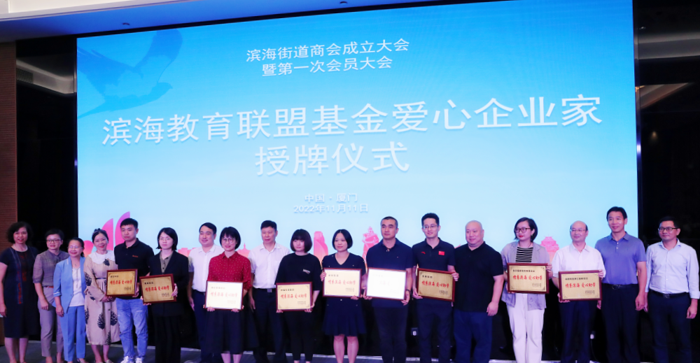 大會最后,廈門建安集團等9家企業及基金會獲頒濱海教育聯盟基金愛心企業家獎牌。